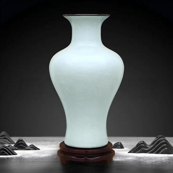 通过72道古法工艺制作而成,采用裂纹釉工艺,瓶口浑圆有致,弧度合宜,瓶口平整匀称。在落款为仿古形式的官窑落款。通过CNAS质检认证,无有害物质释放。